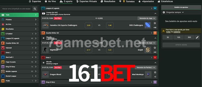 O 161Bet oferece uma grande seleção de opções de apostas em e-sports com probabilidades competitivas